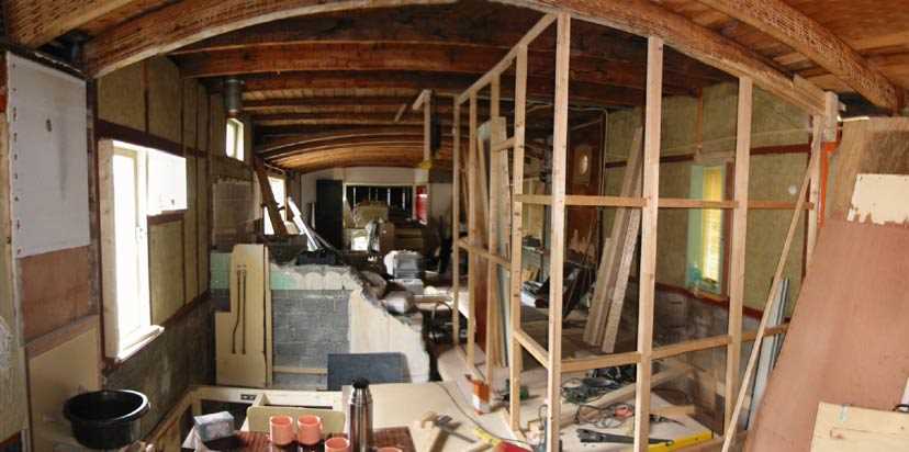 hein had inmiddels de keuken/badkamer muur inelkaar geknutseld en deuren, kozijnen en balkjes gehaald