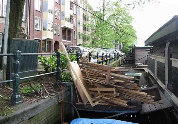 puin op de steiger en kade
