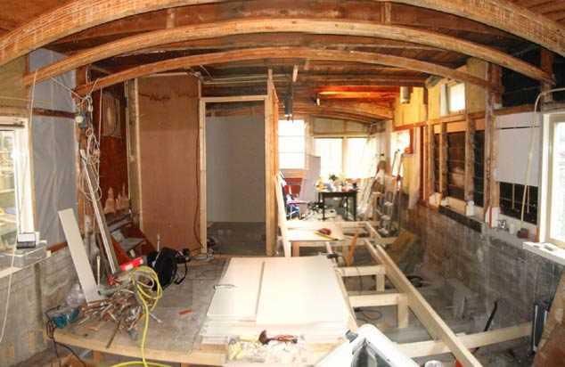 links badkamer, rechts keuken