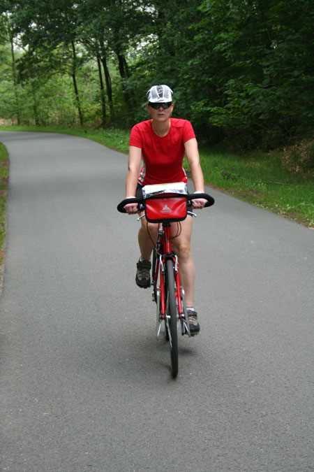 fietsvrouw in het rood